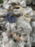 tiny ecru micro crochet clamshell dangles with dropped agate beads and hypo-a copper tone earwires